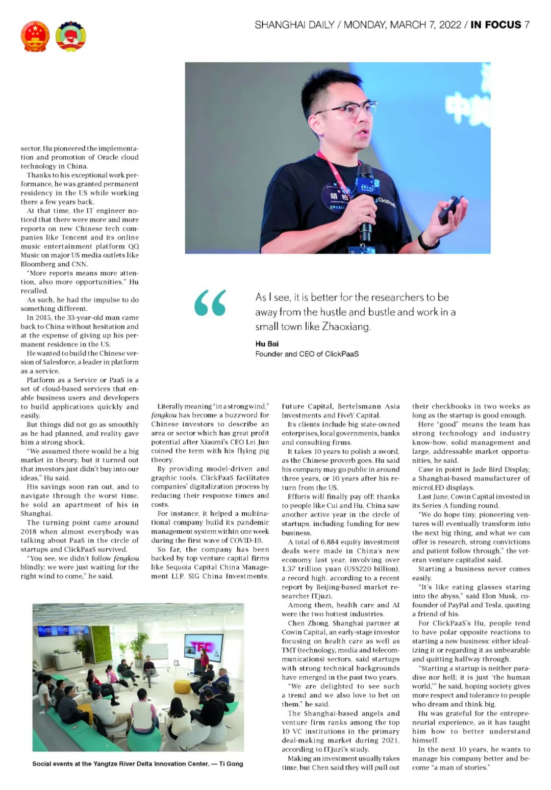【创业故事】《上海日报》专访long8国际唯一官网创始人、CEO胡柏,探究其创业背后的故事
